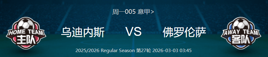 乌迪内斯处于联赛中游,保级无忧、冲欧无望,联赛战意极度模糊,既无抢分的迫切需求,也无死拼对手的动力,球队上下缺乏足够的比赛积极性,仅有的战意来自主场复仇首回合 1-5 惨败的耻辱。