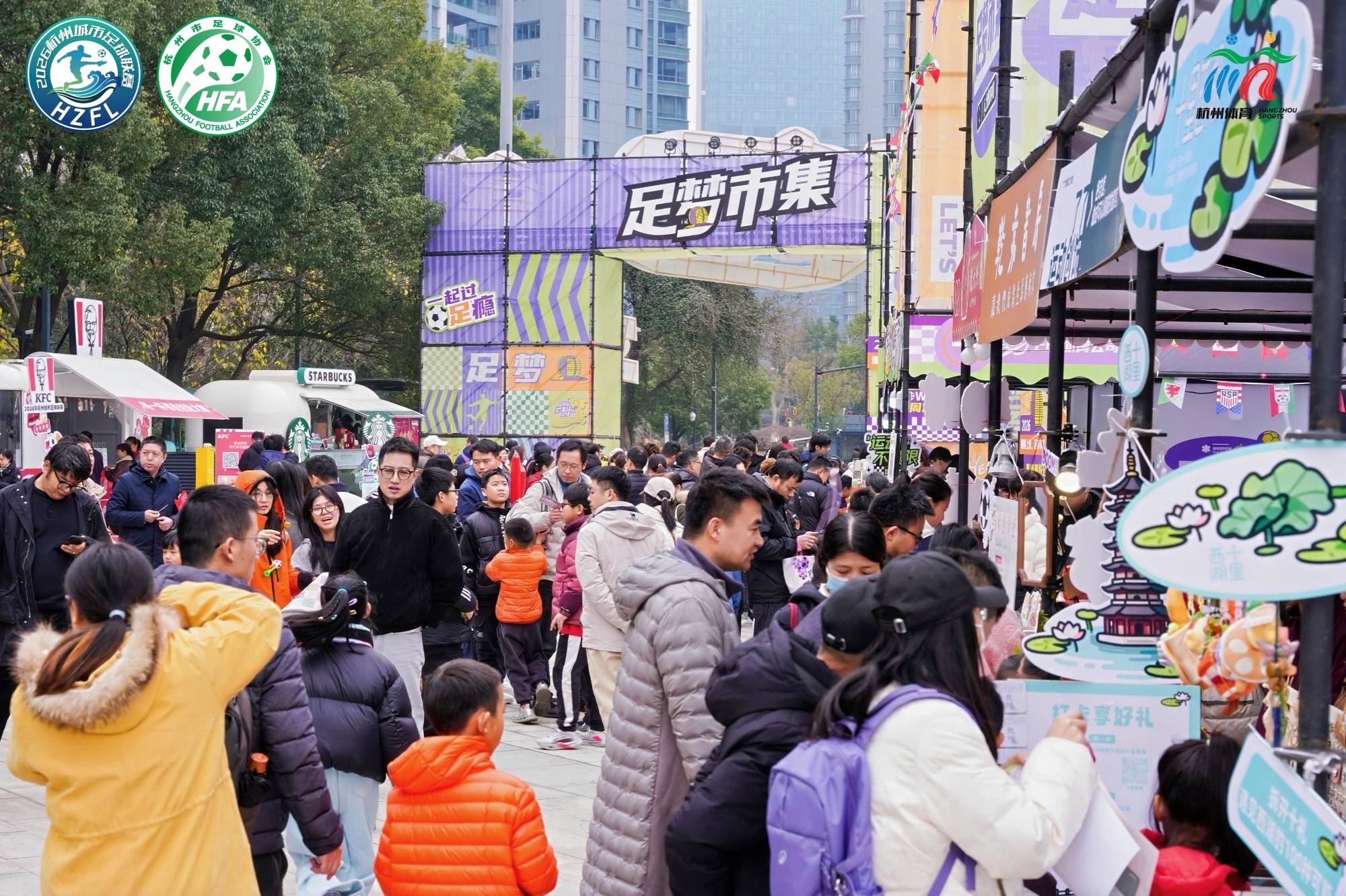 赛场之外,足梦嘉年华足球主题市集与赛事同步启幕!市集将横跨春节期间的五个周末,融合足球互动、文创体验、年味消费于一体,让市民游客观赛之余,沉浸式感受逛市集的惬意与年味。西湖、建德、临安、桐庐、拱墅五大赛区还将展开激烈角逐,市民朋友可通过官方平台观看线上直播,为各队加油助威!